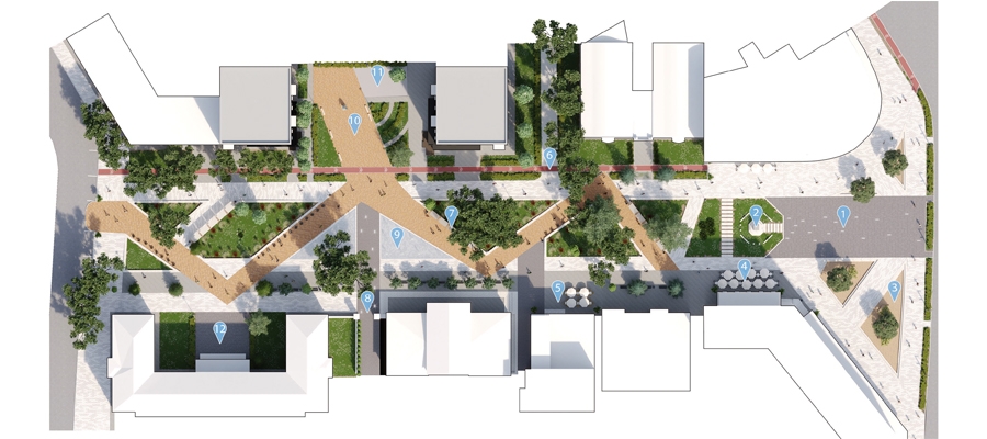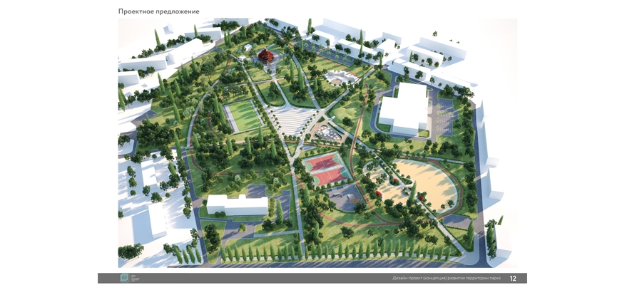 В частности проектом предусмотрена зона скейтпарка, игровые площадки для детей разных возрастов с теневыми навесами, футбольное поле.